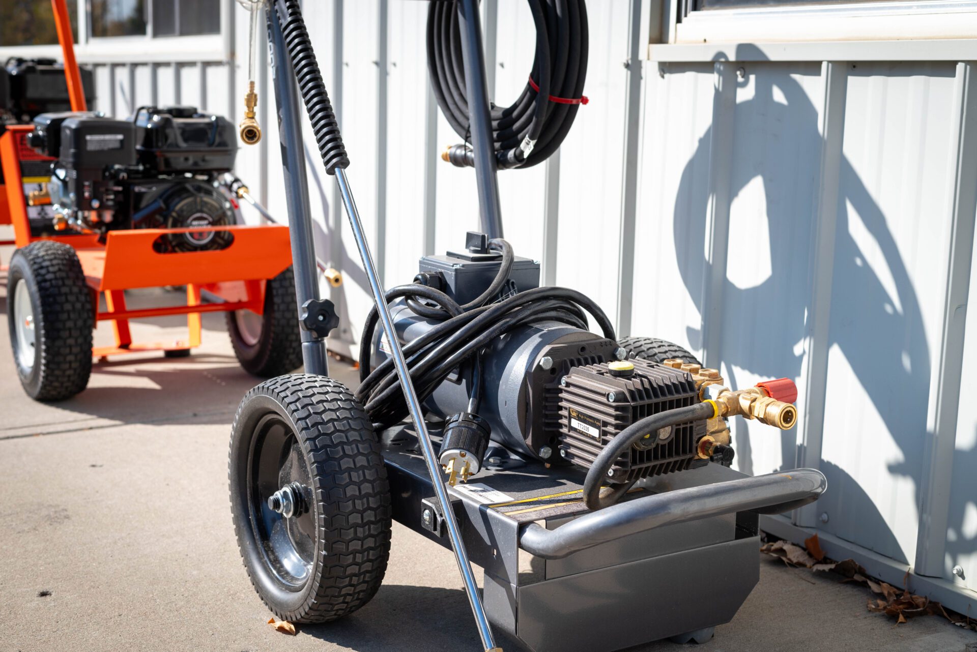 Easy-Kleen’s line of electric pressure washers are used for multiple applications for farm, car and truck washing, meat shops and every day uses. Featuring Commercial Duty triplex plunger pump with oil bath crankcase, stainless steel valves, and all brass manifolds, direct drive 1750 RPM on all models. Available in 1000-15000 PSI.